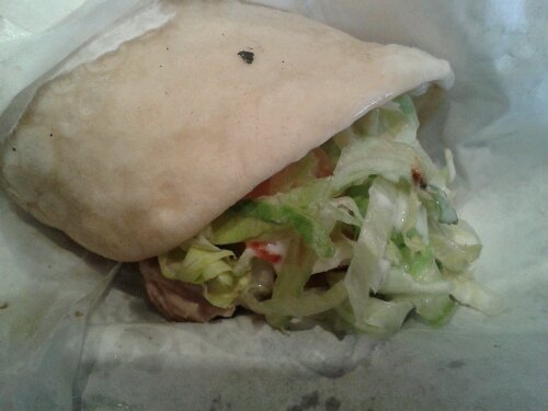 Se trata de un sánguche liviano: el pan sin miga, las carnes blancas (pollo y chancho) crocantes por el efecto del horno vertical, todo impregnado una salsa liviana de yogur que marca una diferencia con nuestra afición a la mayo. Además de este núcleo del sánguche en el que se reconoce la artesanía de la preparación, lleva tomate en cuadros y lechuga en formato de ensalada. Ni el wrap ni el burrito funcionan así: predomina una temperatura más baja y el sabor es mucho más vivaz que sus lejanos parientes fast food. El lugar ofrece una pequeña barra frente al mesón y una escalera conduce a un salón que nos quedó pendiente de conocer. De momento, nos gusta ver cómo aparecen por toda la ciudad ejemplares de esta tradición sanguchera siempre oportuna y lista a adaptarse a las preferencias locales.