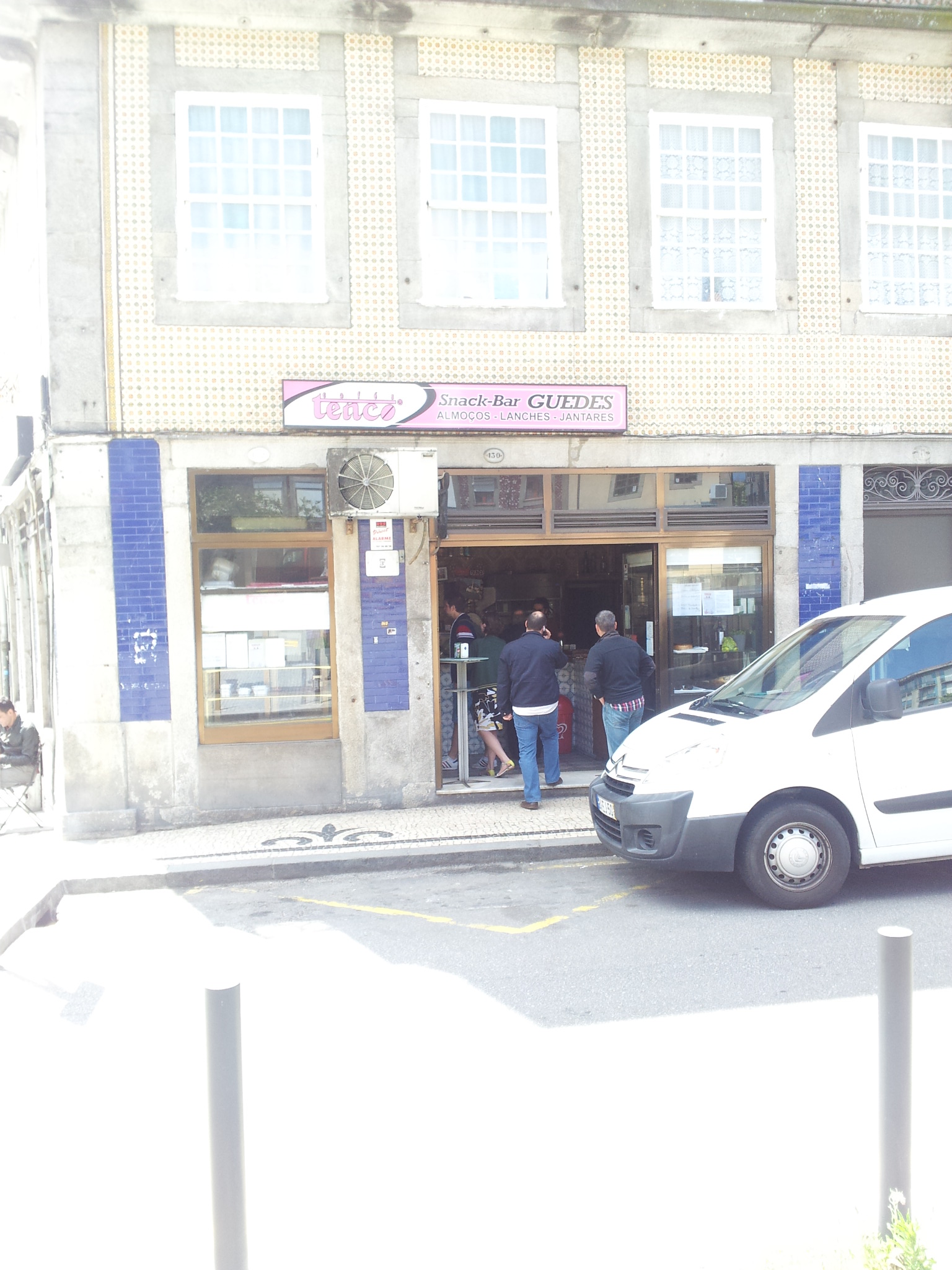 Lo de Casa Guedesdefinitivamente parece calzar en nuestro concepto clásico de picada sanguchera, o más bien una Fuente de Soda tradicional. Pero tradicional a la manera Portuense, claro está. Una Tasca. Ubicada en una zona cercana al centro de Porto no muy concurrida, frente a una plaza dura (Praça dos Poveiros) y a un costado de un pequeño parque, pasa como cualquier otro boliche de esquina en una ciudad que quizá no estará repleta de ellos, pero tampoco es que le falten. Y de hecho eso es, un boliche de esquina con una barra donde se aprietan los taburetes, unas pocas mesas adentro y otras cuantas mesitas en el exterior (las preferidas de los turistas y de los que se quedan ahí hasta tarde, en primavera); atendido por sus propios dueños, gente amable, parca y sencilla, en sus cincuentas, dos hermanos y sus respectivas esposas.