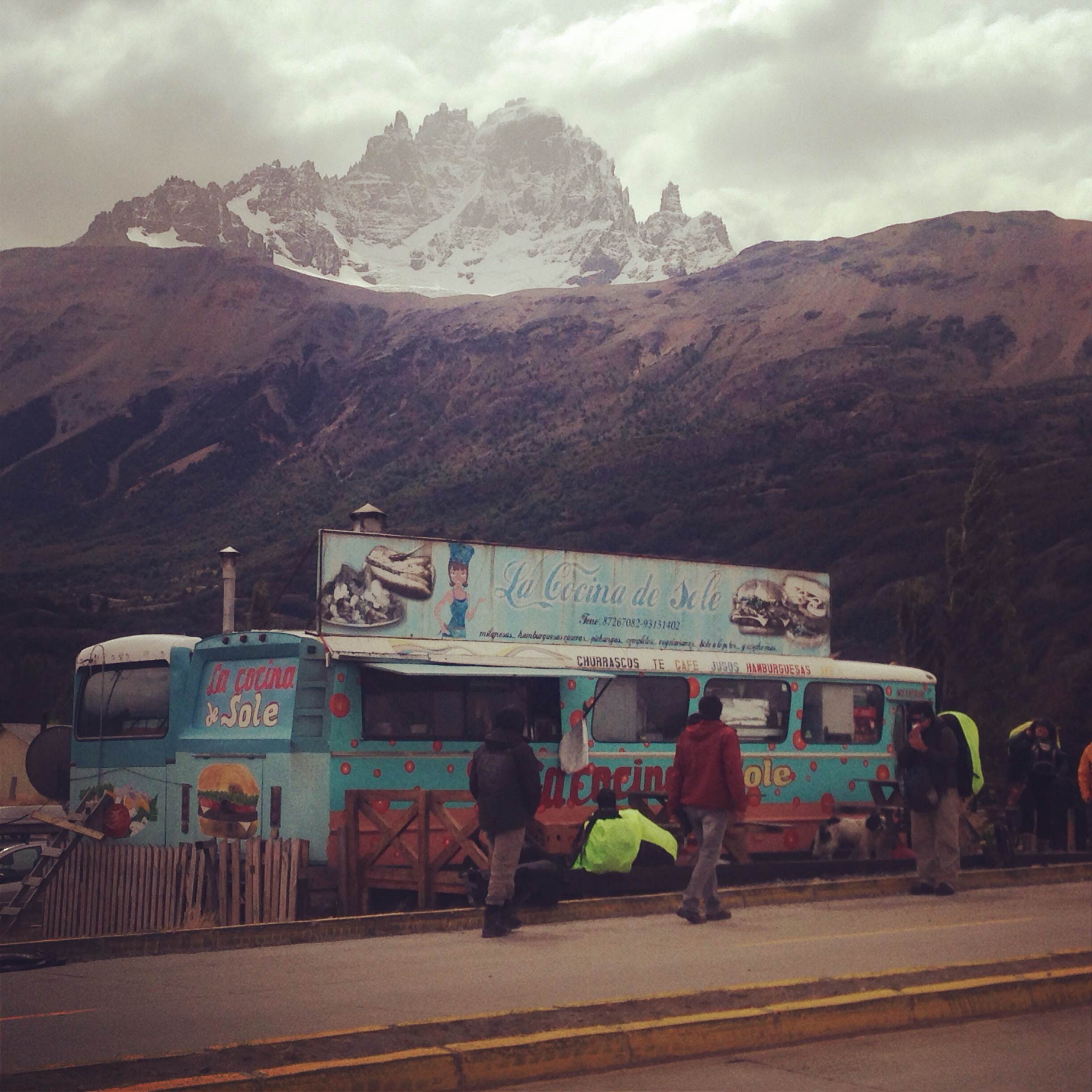 Después de bajar desde la montaña caminando por 10 horas con una mochila de 20 kilos a espaldas y un clima no muy favorable, las motivaciones para llegar a la civilización son muchas. Principalmente la supervivencia y, como no, un plato de comida caliente. Aquí es cuando llegamos a «La Cocina de Sole» el llamado carro de sánguches más austral de Chile y, hasta donde sabemos, único en la carretera austral. Un par de buses acondicionados como comedor, incluyendo acogedores mesones de madera y hasta una pequeña estufa dentro de ellas.